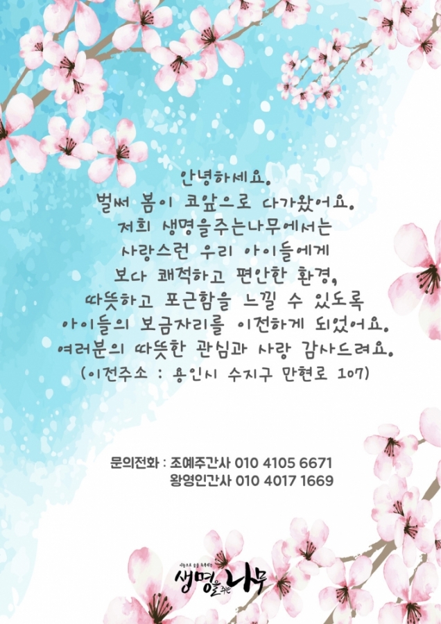 [19'.03.11] 생명을주는나무 보금자리 이전안내