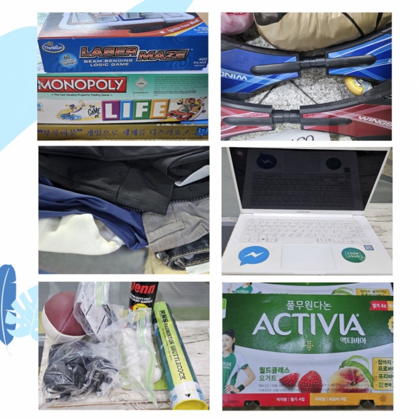 7월 20일   코너스톤동아리에서 보드게임(4종), 노트북, 의류, 도서, S보드외 운동소모품